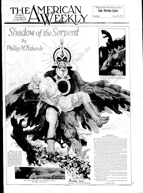 Apparemment, personne aux Etats-Unis, y compris les meilleurs spécialistes des pulps, n'avait connaissance de SHADOW OF THE SERPENT, pour l'instant le seul texte de Philip M. Fisher, Jr connu à n'avoir pas été publié dans un pulp ou assimilé.